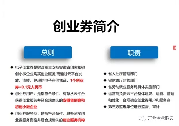 為貫徹落實黨的十九大關于鼓勵創業帶動就業的精神,深入實施安徽省五大發展行動計劃,提升創業和初創企業在共建共享發展中有更多獲得感,降低創業成本,安徽省人社廳與財政廳通過發行電子創業劵的形式為創業者和初創企業提供補貼。全省16個地市30多家服務商滿足你創業期間的所有需求。
