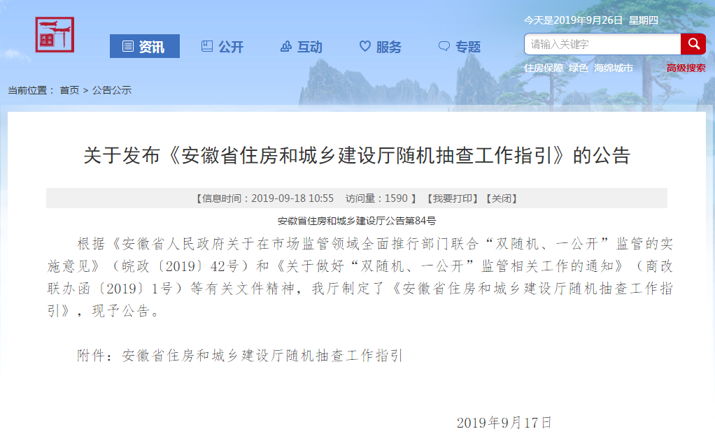 近日,安徽省住房和城鄉(xiāng)建設(shè)廳根據(jù)《安徽省人民政府關(guān)于在市場(chǎng)監(jiān)管領(lǐng)域全面推行部門聯(lián)合“雙隨機(jī)、一公開”監(jiān)管的實(shí)施意見》(皖政〔2019〕42號(hào))和《關(guān)于做好“雙隨機(jī)、一公開”監(jiān)管相關(guān)工作的通知》(商改聯(lián)辦函〔2019〕1號(hào))等有關(guān)文件精神,制定了《安徽省住房和城鄉(xiāng)建設(shè)廳隨機(jī)抽查工作指引》