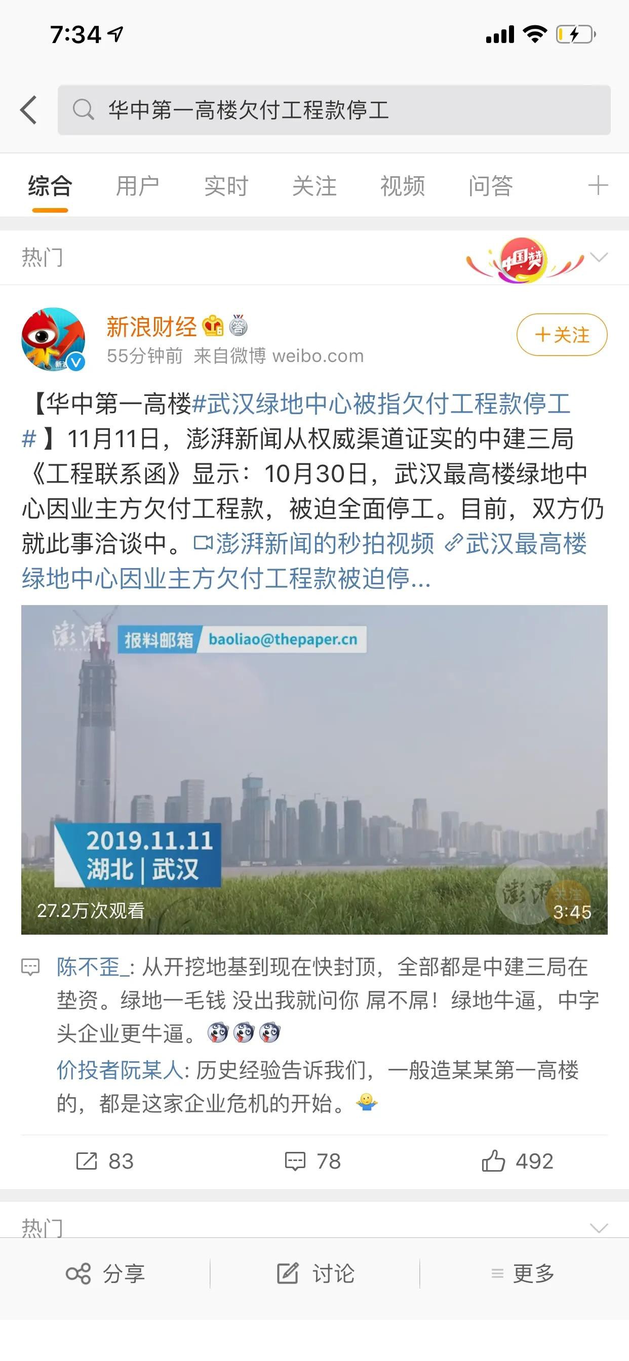 而綠地控股集團方面工作人員則回應《每日經(jīng)濟新聞》記者稱,這個文件流出之后,我們也和中建三局說了這個問題,他們會去解決文件流出的問題。至于武漢綠地中心欠款具體情況以及何時復工等相關(guān)問題,上述工作人員表示暫時不便回復,“我們會和中建三局協(xié)商處理這個問題”。